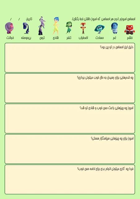 این دفتر در سایز A5 طراحی شده تا هر روز احساساتت را آگاهانه بشناسی و ثبت کنی. با انتخاب حالوهوای روز از میان احساساتی مثل شادی، غم، اضطراب یا خشم، میتوانی درباره دلیل آن بنویسی، برای بهتر شدن حالات برنامهریزی کنی، اتفاقهای خوب روز را ثبت کنی و تمرین شکرگزاری انجام دهی. این دفتر بهت کمک میکند خودت را بهتر درک کنی و حالِ خوبت را آگاهانه بسازی.